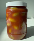 Each jar is packed with hand-stuffed pimento olives soaking in a vinegary, light tomato and lemon brine with hints of Worcestershire and horseradish for a crisp, savory kick. Mild in heat but bold in personality, every bite balances tang, zest, and that signature Bloody Mary flair.